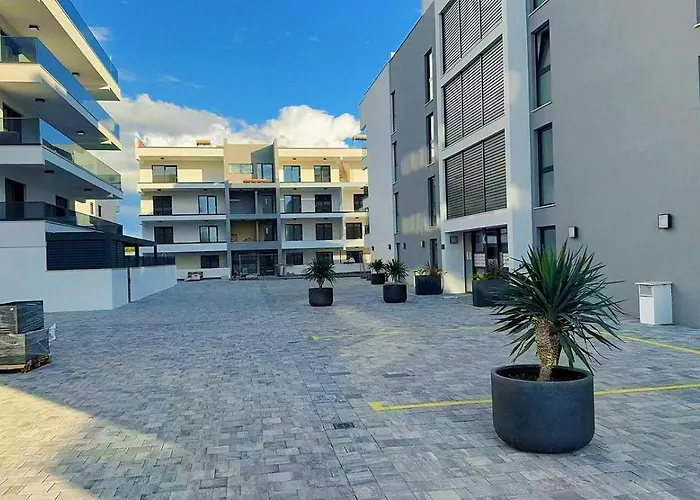 Appartement Y'S Azure Horizon à Zadar de 80 m^2 est situé dans un quartier de plage, à seulement 6 minutes à pied de Sailing club Uskok et à 3 km de la Cathédrale Sainte-Anastasie. Doté d'une terrasse avec vue sur la mer, l'appartement se trouve à quelques pas de Beach Uskok.